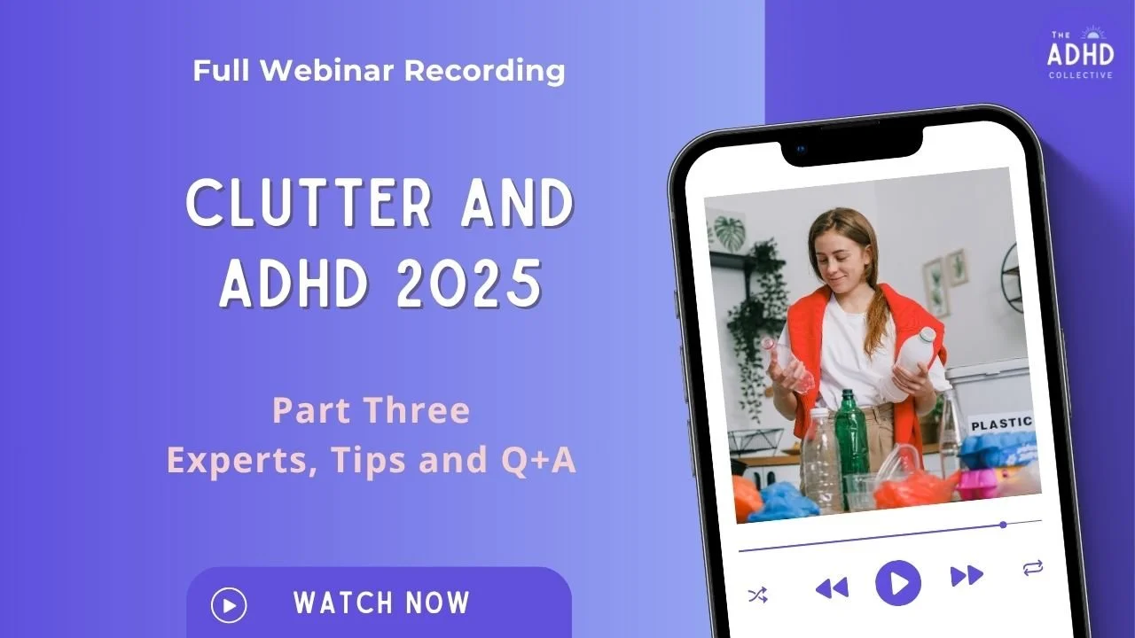 Your Full Webinar Video Library Skip to Videos All | ADHD Essentials | Daily Life With ADHD | Relationships with Others | Mindset and Mental Health | Physical Health and ADHD | Daily Life With ADHD, Mindset and Mental Health, Gentle Self Care Part Two Gentle Self Care For When You're Struggling Perfectionism Part Two Hyperfocus & Hyperfixations Part Two Relationships with Others, Daily Life With ADHD, ADHD Essentials, Hyperfocus & Hyperfixations Part One Daily Life With ADHD, Clear The Decks Workshop Daily Life With ADHD, Clear Your Decks Self Coaching for ADHD Mindset and Mental Health, Different Types of Rest Daily Life With ADHD, Clutter Week One Daily Life With ADHD, Clutter Week Two Daily Life With ADHD, Clutter Week 3 Daily Life With ADHD, Demand Avoidance Part Two Daily Life With ADHD, Demand Avoidance Part One Daily Life With ADHD, Laundry and ADHD Latest ADHD News and Research Green Time, Nature and ADHD Part Two Physical Health and ADHD, Daily Life With ADHD, Mindset and Mental Health, Green Time, Nature & ADHD Explaining Your ADHD To Others Reasonable Adjustments Part Two Daily Life With ADHD, Reasonable Adjustments at Work Pt 1 Self Talk Part Two: Shrinking Your Inner Critic Self Talk Part One: The Impact of Negative Self Talk Relationships with Others, Mindset and Mental Health, ADHDERS AND FURRY FRIENDS Managing Your Inbox With Saffron Coffield Daily Life With ADHD, Mindset and Mental Health, Building a Productivity System with Tina Squire Digital Dopamine Detox Daily Life With ADHD, Mindset and Mental Health, News Fatigue and Anxiety Daily Life With ADHD, Mindset and Mental Health, Turn Intentions Into Actions Full Webinar News Round Up Jan '25 Festive Survival '24 Full Webinar Festive Survival Slide Summary Video Boundaries Part 2 2024 Summary Boundaries 2024 Part 2 Full Boundaries 2024 Part 1 Running Late Part 1 Running Late Part Two Running Late Q&A Light and Seasonal Affective Disorder ADHD Christmas Prep Focus and Productivity Hacks Daily Life With ADHD, Slimming Your Commitments Changes and Transitions Breaking Down Tasks Part Two Vulnerability to Unhealthy Relationships Managing Decision Fatigue General Relationships Mindset and Mental Health, Gratitude and ADHD Journalling - The Power of The Pen The Importance of Connection Mindset and Mental Health, Impostor Syndrome Daily Life With ADHD, Voting with ADHD Switching Off and intentional rest week two Switching off and Intentional Rest Week One Eating Part Two Eating Week One Movement Exercise Part Two Daily Life With ADHD, Guest Expert Anita Bhagwandas - Travel, Trips & Holiday Tips Relationships with Others, Dating and ADHD Daily Life With ADHD, Travel, Trip & Holiday Stress Part One Relationships with Others, ADHD Essentials, Mindset and Mental Health, Rejection Sensitive Dysphoria (RSD) Part One Relationships with Others, ADHD Essentials, Mindset and Mental Health, Rejection Sensitive Dysphoria (RSD) Part Two Physical Health and ADHD, Sleep Part Two Physical Health and ADHD, Sleep Part One Physical Health and ADHD, Daily Life With ADHD, Mindset and Mental Health, Overwhelm, Rest & Recovery Part Two Physical Health and ADHD, Daily Life With ADHD, Mindset and Mental Health, Overwhelm, Rest & Recovery Part One Daily Life With ADHD, Mindset and Mental Health, The Problem With Purpose Part Two Daily Life With ADHD, Mindset and Mental Health, The Problem With Purpose Part One Daily Life With ADHD, Managing Money Part Two Daily Life With ADHD, Mindset and Mental Health, Managing Money Part One Physical Health and ADHD, Daily Life With ADHD, Mindset and Mental Health, Clutter and ADHD Part Two Physical Health and ADHD, Daily Life With ADHD, Mindset and Mental Health, Clutter and ADHD Part One Daily Life With ADHD, Smartphones and Screen Time Part Two Daily Life With ADHD, Smartphones and Screen Time Part One Relationships with Others, Daily Life With ADHD, Mindset and Mental Health, Getting to Know The Real You Daily Life With ADHD, Mindset and Mental Health, Managing Decision Fatigue and Reducing Choice Physical Health and ADHD, Daily Life With ADHD, Mindset and Mental Health, Hacking Habits Daily Life With ADHD, Mindset and Mental Health, Perfectionism and ADHD Daily Life With ADHD, Embracing Flexible Routines Daily Life With ADHD, Resolutions Relationships with Others, Apologising Week Two Relationships with Others, How to Set Boundaries Relationships with Others, The Importance of Boundaries Relationships with Others, Vulnerability to Unhealthy and Abusive Relationships Relationships with Others, ADHD in the bedroom Relationships with Others, Toolkit for Thriving Relationships Relationships with Others, Apologising and ADHD Relationships with Others, People Pleasing and Codependency Relationships with Others, Effective Confrontation and Difficult Conversations Relationships with Others, Managing Conflict Relationships with Others, Friendships and ADHD Relationships with Others, Intimacy and ADHD Part 3 Relationships with Others, Overview - Intimacy, Sex, Dating and ADHD Daily Life With ADHD, Workplace Accommodations Part One Daily Life With ADHD, Strategies for Breaking Down Tasks Part Two Daily Life With ADHD, Breaking Down Tasks Part One Webinar Recording Physical Health and ADHD, Movement & Exercise Part One Physical Health and ADHD, Mindset and Mental Health, Seasonal Affective Disorder (SAD) ADHD Essentials, ADHD and Individual Strengths Physical Health and ADHD, ADHD Essentials, ADHD and Co-Occuring Conditions Relationships with Others, ADHD Essentials, Explaining your ADHD to Others ADHD Essentials, Mindset and Mental Health, Accepting your ADHD ADHD Essentials, ADHD Diagnosis and Treatment ADHD Essentials, What is ADHD?